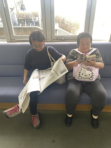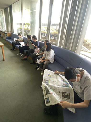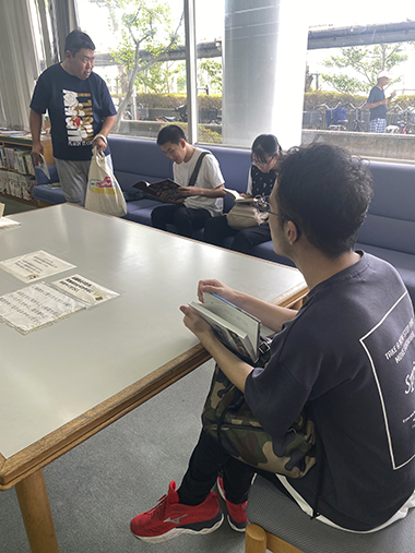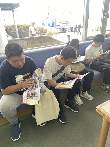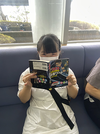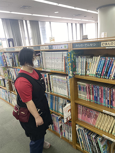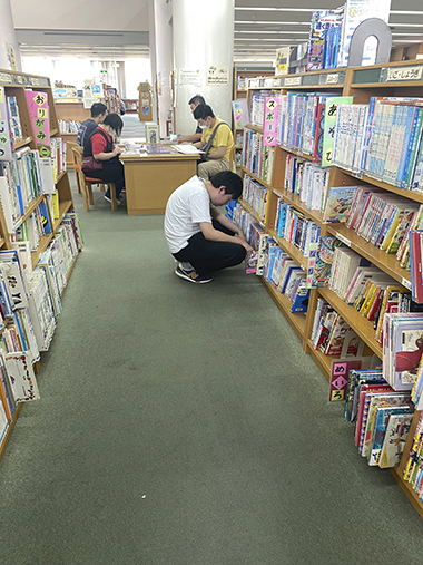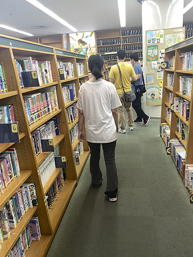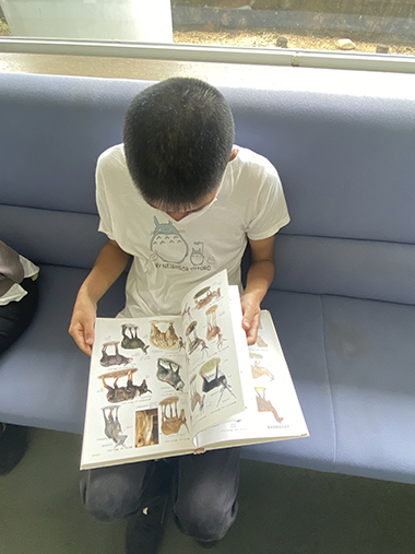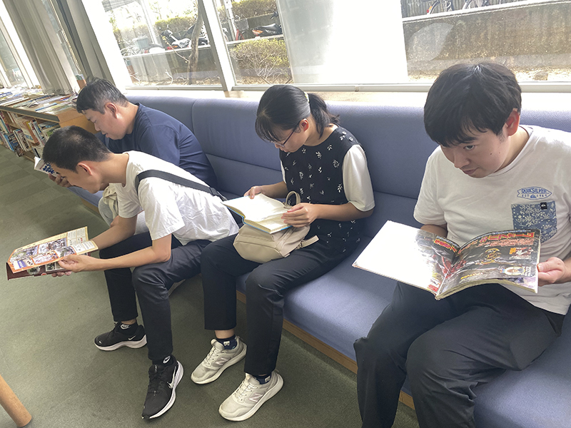 図書館が初めての人は本の数にびっくりした様子で館内を歩き回っています。読みたい本を見つけた人は静かに開いています。絵本やイラスト集、むずかしい小説や新聞などそれぞれの個性が出ていました。「何を読んでるんですか?」と声を掛けると「しー。図書館では静かにしてください」と注意されてしまうことも。