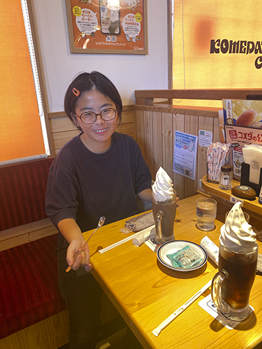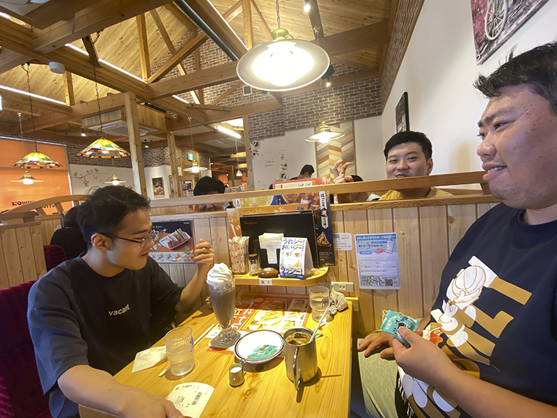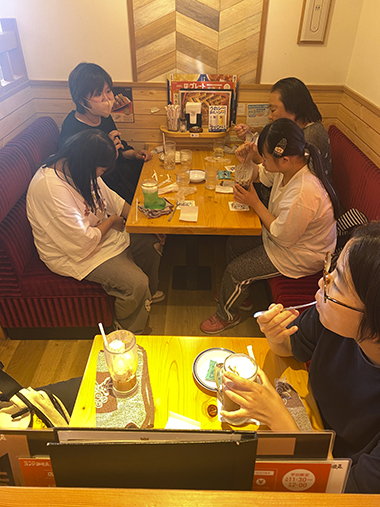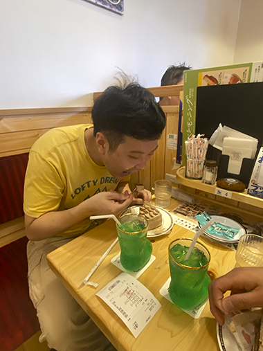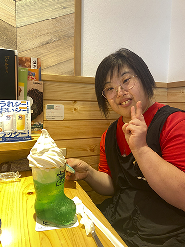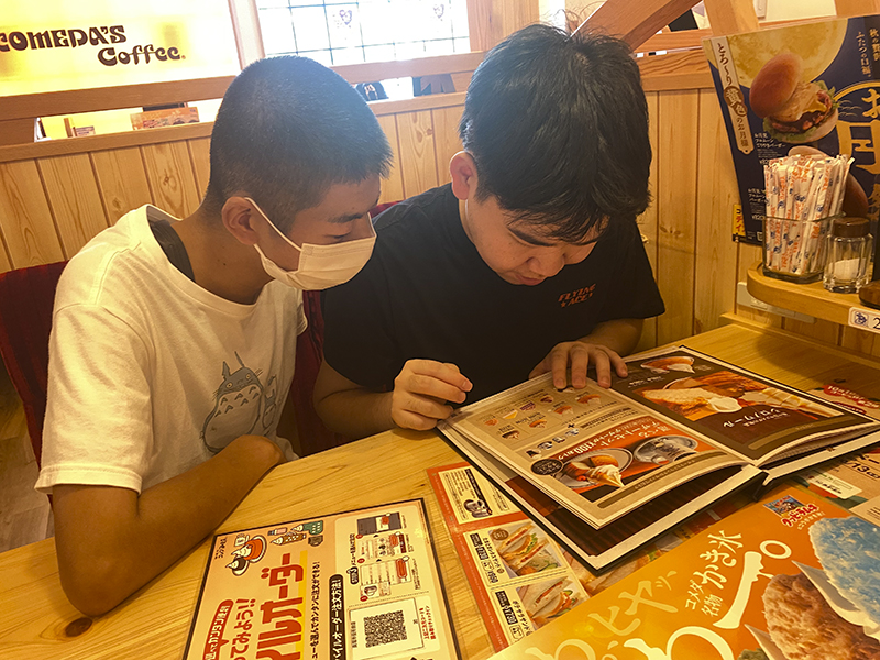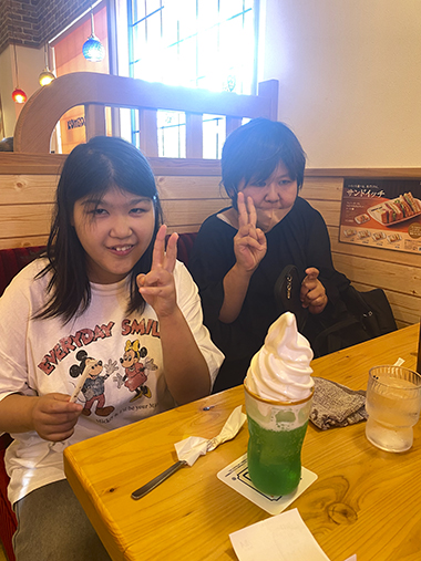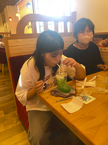 その後、コメダ珈琲でティータイムです。メニューを見るや否や「全部食べたい!」「おいしそう」と目がキラキラ。コーヒーやかき氷・ケーキなど好きなものを注文しました。「おいしい」と会話を楽しみ、リフレッシュできたようです。今後も学びあり笑顔ありの企画にしたいと思います。