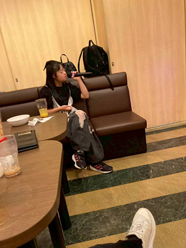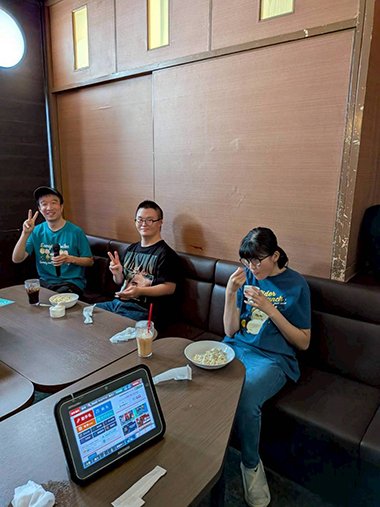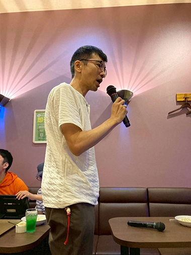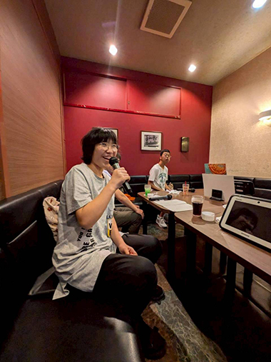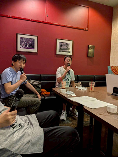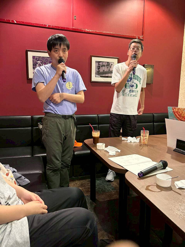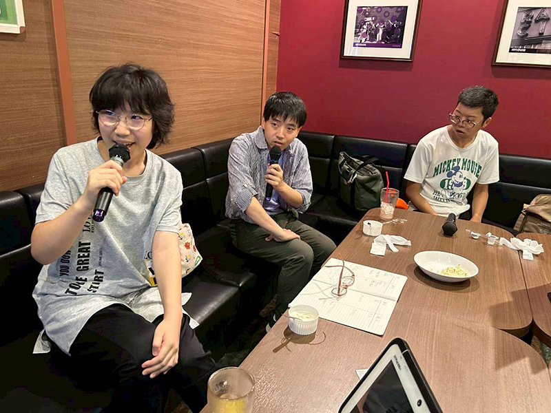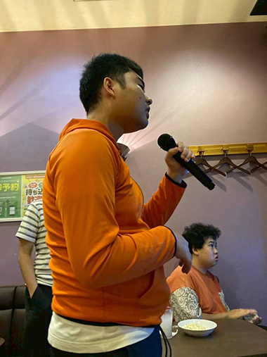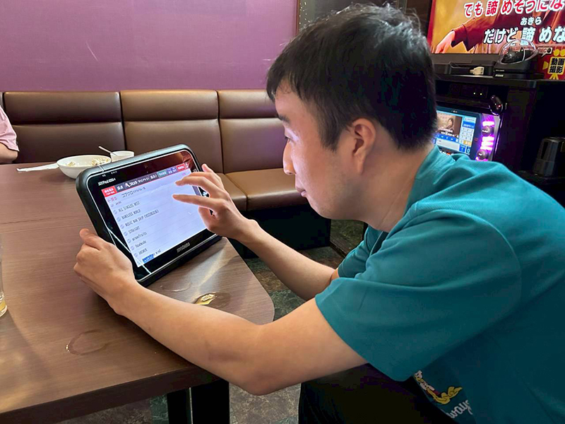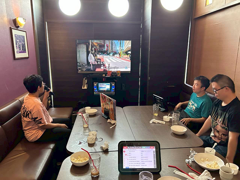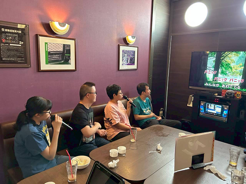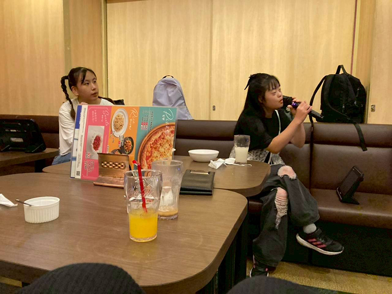 事前に曲をメモしてきたり、携帯で検索したり。普段歌わない人も全員歌いました。ノリノリで歌って踊る人、しっとりとしたバラードの人。歌が途切れません。好きな曲がかかるとみんなで大合唱!
