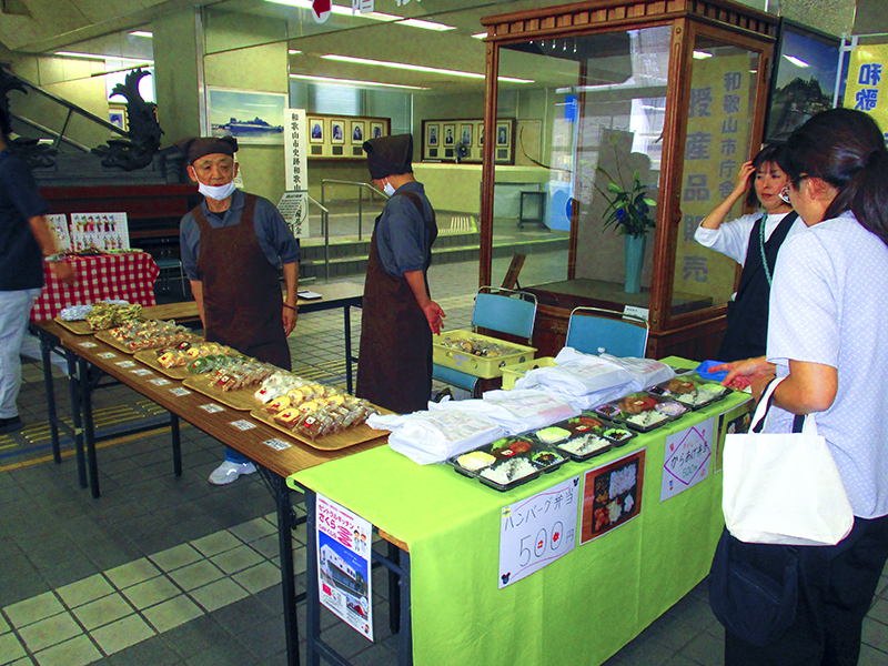 「セントラルキッチンさくら」では、和歌山市役所で開催される授産品販売に年3回参加しています。今回は当日の朝に作った唐揚げ弁当とハンバーグ弁当、「マシュウおじさん」の焼き菓子を持って出発しました。