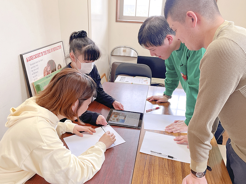 今日は何にしようかとみんなで相談し、決まったら撮影スタート。何枚も写して一番良く撮れたものを選びます。写真が決まったら、明るさやフィルターなどを調整して加工。最後に文章を考えて入力するといよいよ投稿です。