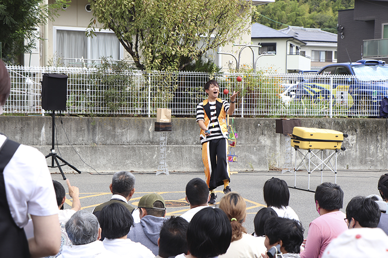 次は「まつだこうき」さんのパフォーマンス。ルービックキューブが一瞬で揃うマジックなどに「すごーい!」と感嘆の声が上がります。ラストはジャグリングをしながらリンゴにかぶりつくという大技。歓声が沸き起こりました。