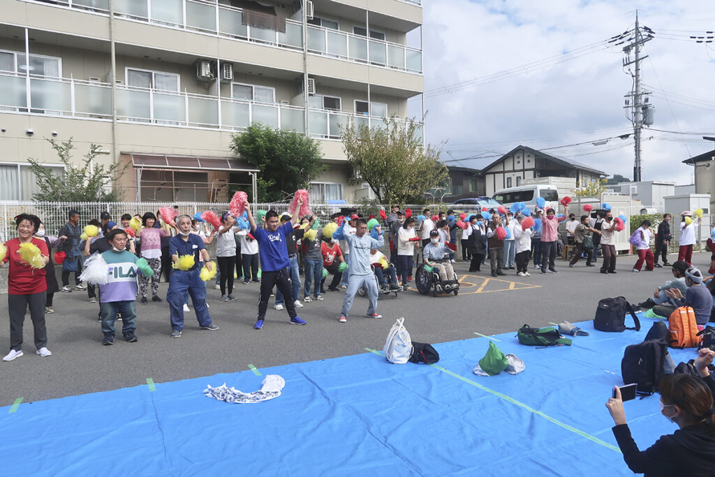 10月20日に「おひさま東」で、「みのり紀伊」「おひさま」「おひさま東」と「野のはな」合同の秋祭りを開催しました。入居者に声を掛けると「今まで行ったことがなかったけど、一度行ってみましょうか」「たこ焼き食べたいから案内して」などのうれしい返事。