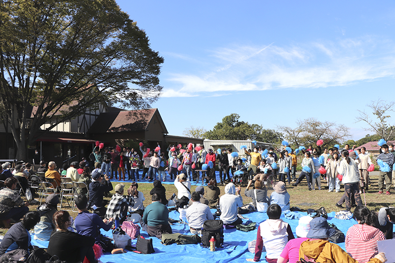 最後は「野のはな」利用者のダンス「ジャンボリミッキー」です。手に持ったカラフルなポンポンが揺れて躍動感あふれる踊り。思わず手拍子が起こって大盛り上がりでした。