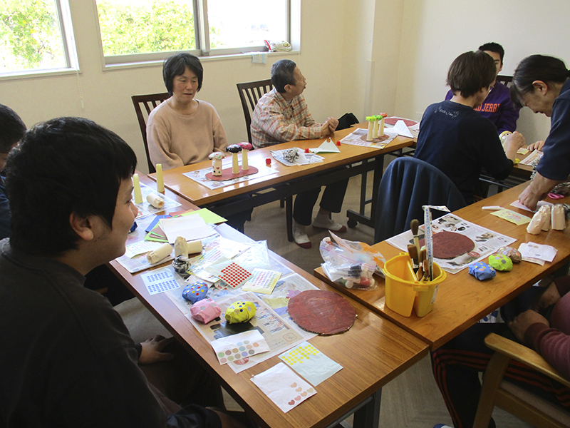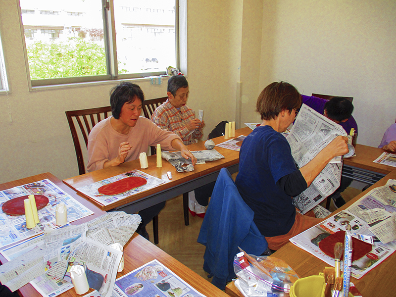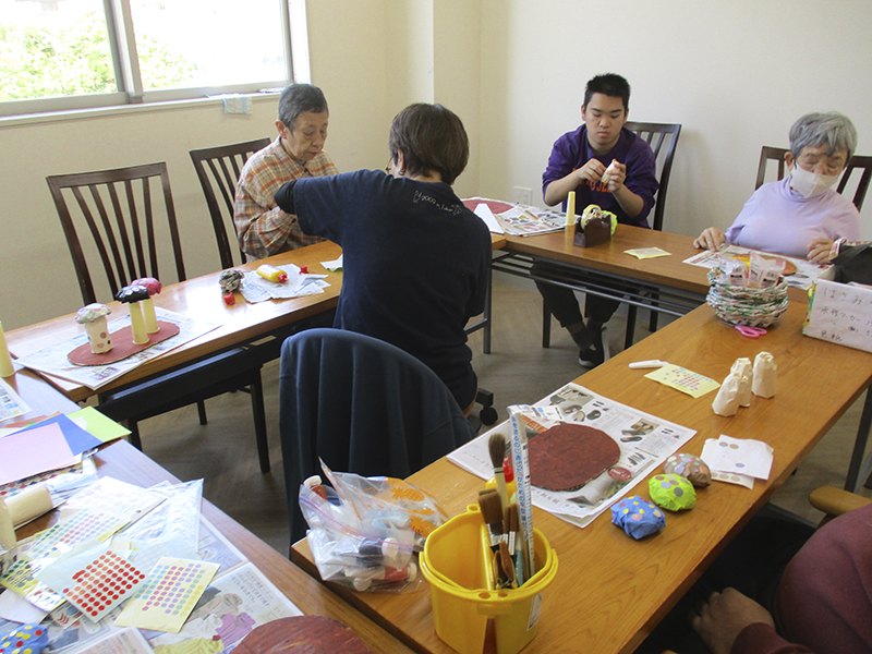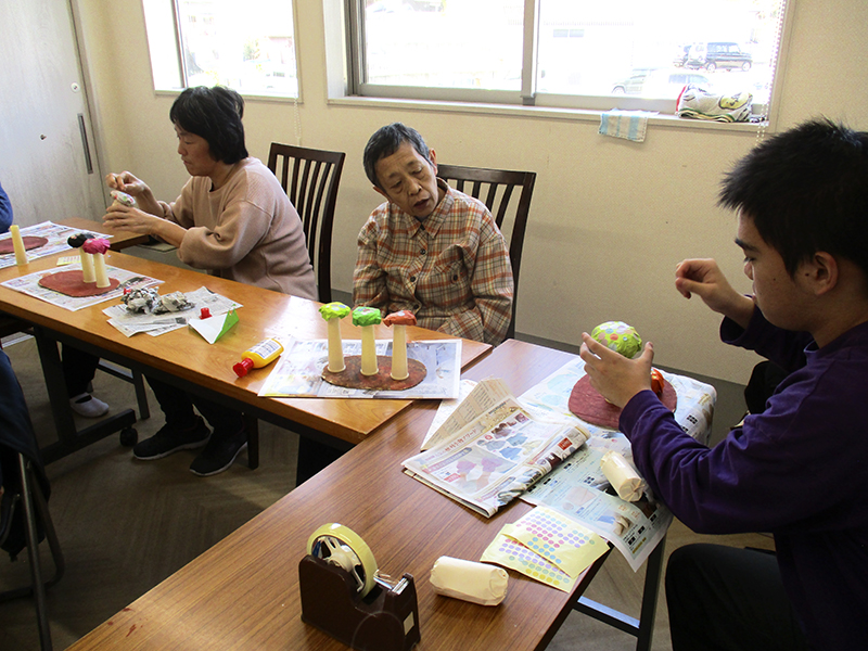 「セントラルキッチンさくら」では、月に2回、絵画教室を開催しています。今回のテーマは「秋」です。秋といえばスポーツの秋、読書の秋に食欲の秋ということで、キノコのオブジェを作りました。