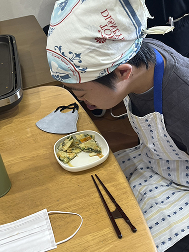 ホットプレートを使っての調理実習でしたが、事故なく楽しく終わることができました。みんな次回を楽しみにしています。