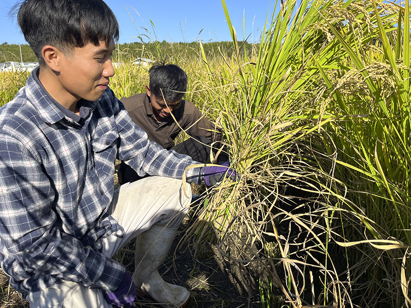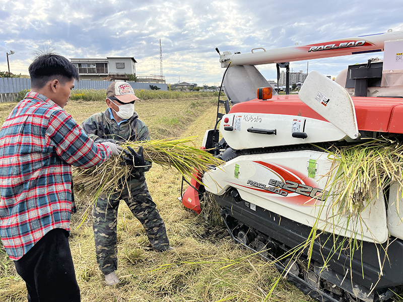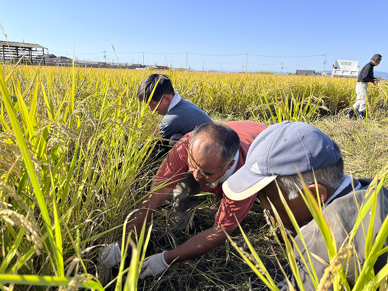 農業班にとって初めての米作り。「カワノ農園」の川野さんにご支援いただきながら貝塚市にある田んぼで「ヒノヒカリ」を栽培しました。