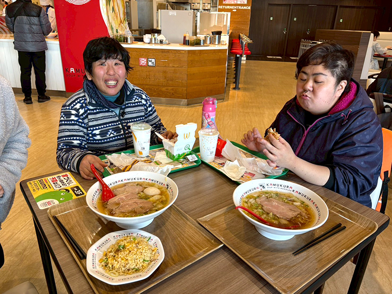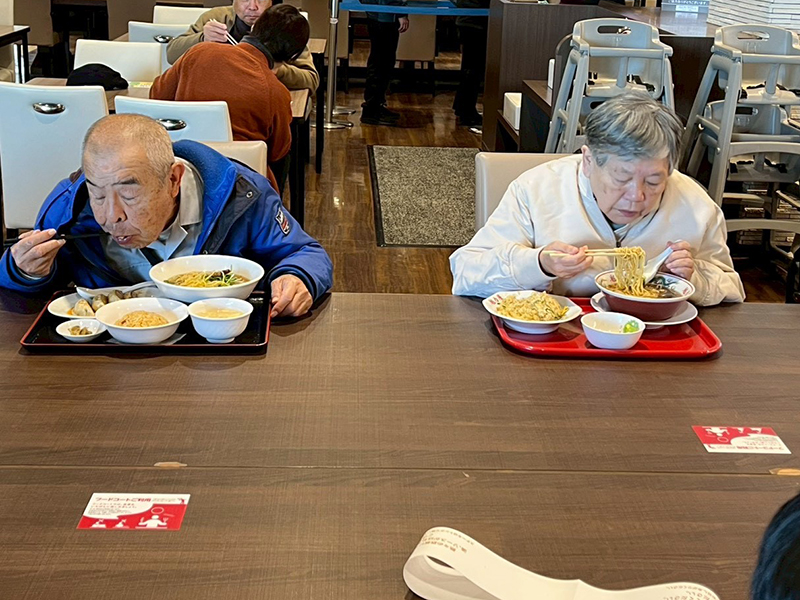 その後、イオンモール和歌山へ移動してフードコートで昼食をとりました。いつものメンバーで食べる食事もところ変わればなおおいしいようで、笑顔の絶えないランチタイムを過ごしました。