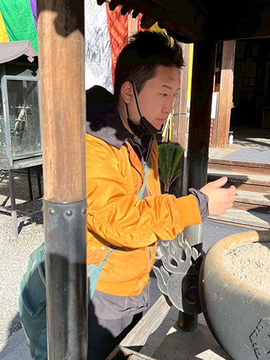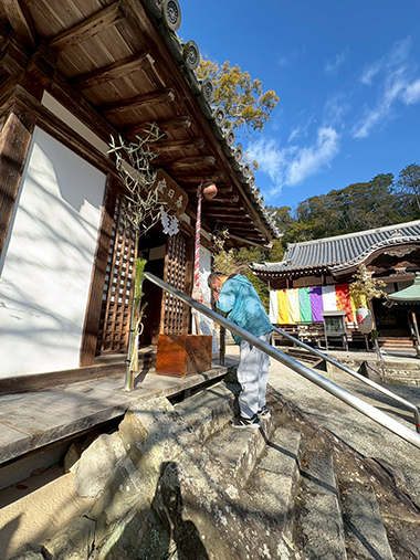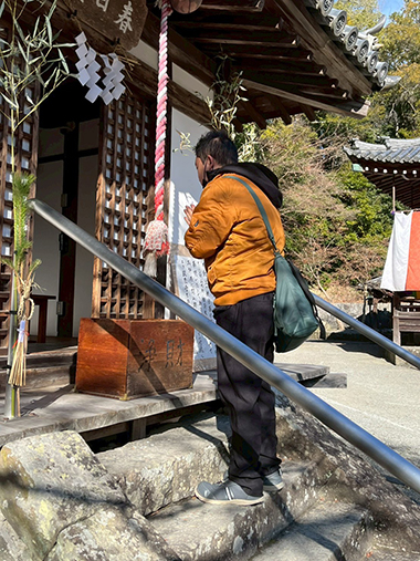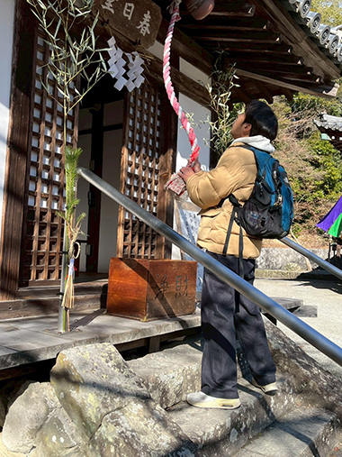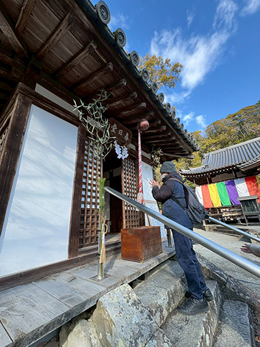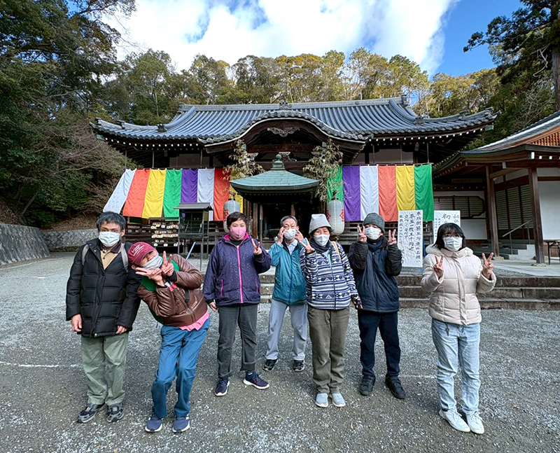 「マジックブルーム」では、1月6・7日の二日間に分かれて、根来寺に初詣に行きました。薄曇りだった空も着いた頃には明るくなって絶好の初詣日和。みんな熱心に願い事をしています。本堂の前で記念撮影をしました。いい笑顔です。