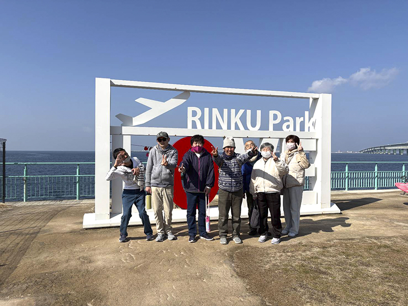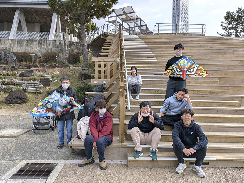 「マジックブルーム」では、2月13・16日と二日に分かれてりんくう公園へたこ揚げに行きました。たこ揚げをしたことが無い人が多いとのこと。「初めてやから楽しみ!」「風が吹いてないけど揚がるかな?」とドキドキしながら公園へ到着。