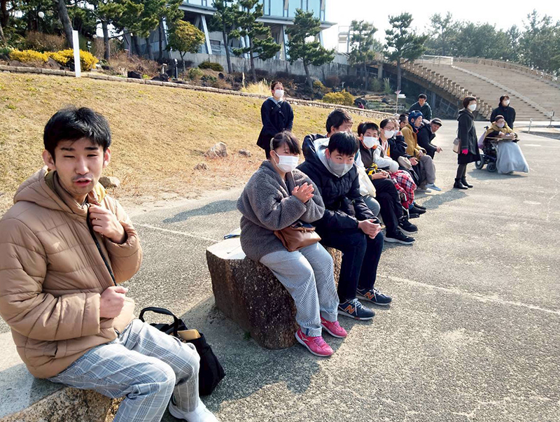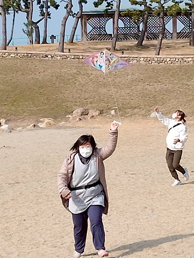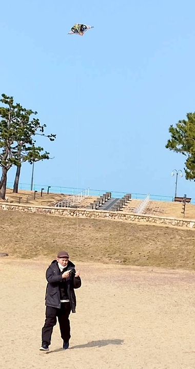 行きの車内では「楽しみです!」とワクワクの利用者がいる中で「揚がるかなぁ」と少し不安そうな人も。そんな話をしているうちに到着。たこ揚げ開始です。