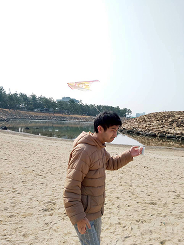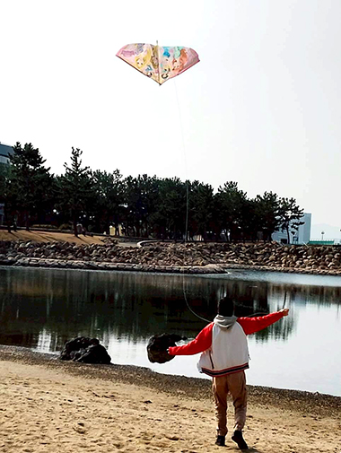 風は少し弱めでしたが、みんなたこを手に取り青空の下を全力疾走。たこが空高くあがります。「揚がった、揚がった!」「走れー」とたこが揚がるたびに大歓声が上がり、楽しそうです。最後にみんなで集合写真を撮りました。