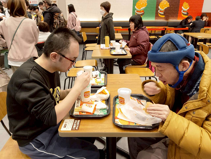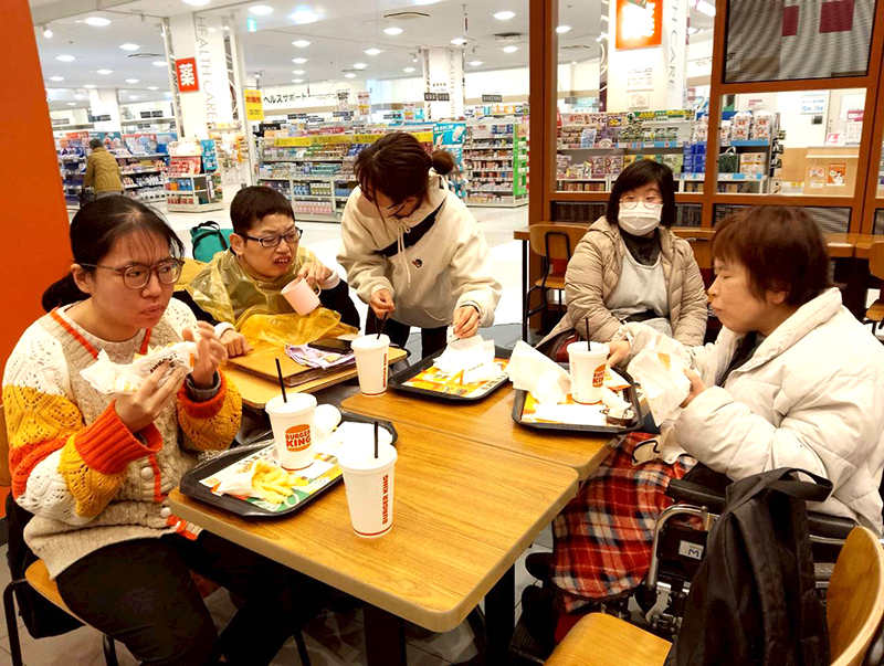 続いて、みんなが心待ちにしていたバーガーキングです。あれもこれも全部食べたいと、うれしそうにメニューを選んでいます。満足そうな顔でハンバーガーを頬張る姿を見ていると、こちらも幸せな気持ちになりました。