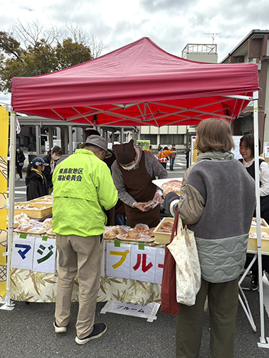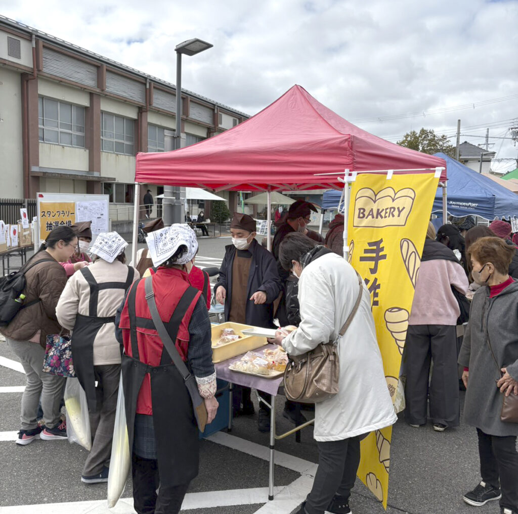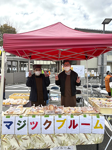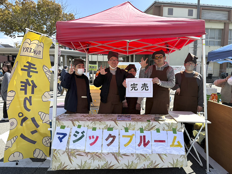 「マジックブルーム」では3月14日、阪南市のボランティアフェスティバルでパンの販売を行いました。地域の福祉委員会や福祉作業所などさまざまな団体が参加。模擬店やバザーの出店があり、ステージではパフォーマンスの披露も行われてとてもにぎやかです。